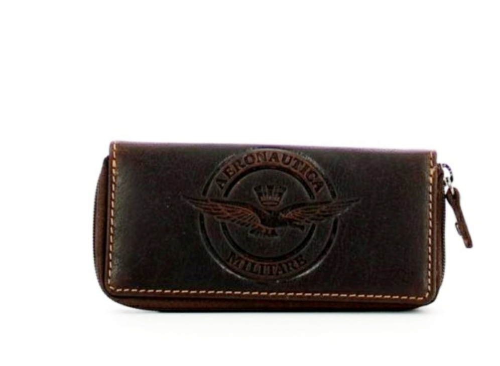 Astuccio Portachiavi con 6 ganci Aeronautica Militare, accessorio in pelle con logo e chiusura con zip.