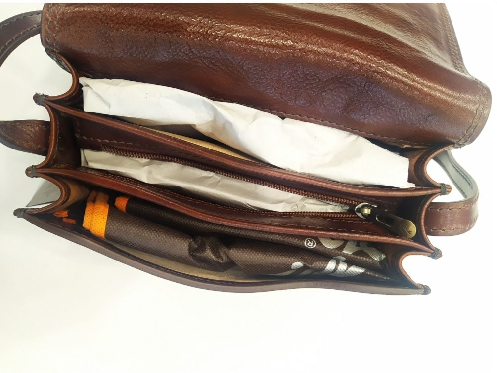Borsa in cuoio organizzata con tre ampi e accessibili soffietti, di cui uno chiuso da lampo. La lunghezza della tracolla è regolabile e consente un pratico utilizzo a spalla o a tracolla. All'interno è organizzata con tasche per telefono e chiavi. La patta i chiusura è bloccata con una calamita per evitare fastidiosi movimenti. Contattateci per conoscere la disponibilità del colore desiderato!! Tutti gli articoli della linea "il Kuoio" hanno certificato di garanzia numerato di "vera pelle conciata al vegetale". Gli estratti vegetali che vengono utilizzati nel processo di concia sono il segreto di una lavorazione lenta e naturale che mantiene inalterate le proprietà della pelle esaltandone qualità e profumo e garantendo, nel tempo, caratteristiche uniche di morbidezza, calore e resistenza. Ancora oggi, come da diversi secoli, nel cuore antico della Tosacana, tra Pisa e Firenze, i conciatori sono fedeli a questa produzione artigianale, coniugando una tradizione ricca di valori con l'innovazione tecnologica.