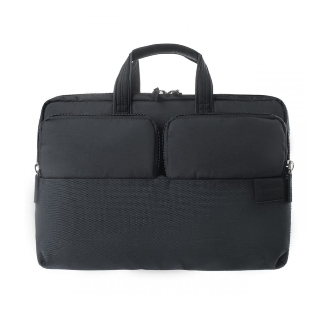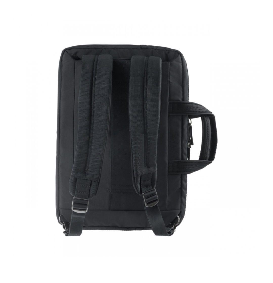 Borsa business zainabile, per MacBook 15” e laptop fino a 15.6”, in materiale tecnico e dettagli in neoprene. Due scomparti interni con cerniere separate, dotati di pannello organizer e di vano protetto per PC e tablet, e due tasche frontali esterne, la rendono particolarmente capiente ed organizzata. Gli spallacci a scomparsa facilitano la portabilità. Tracolla regolabile e staccabile