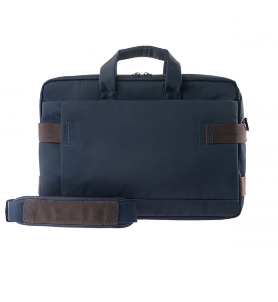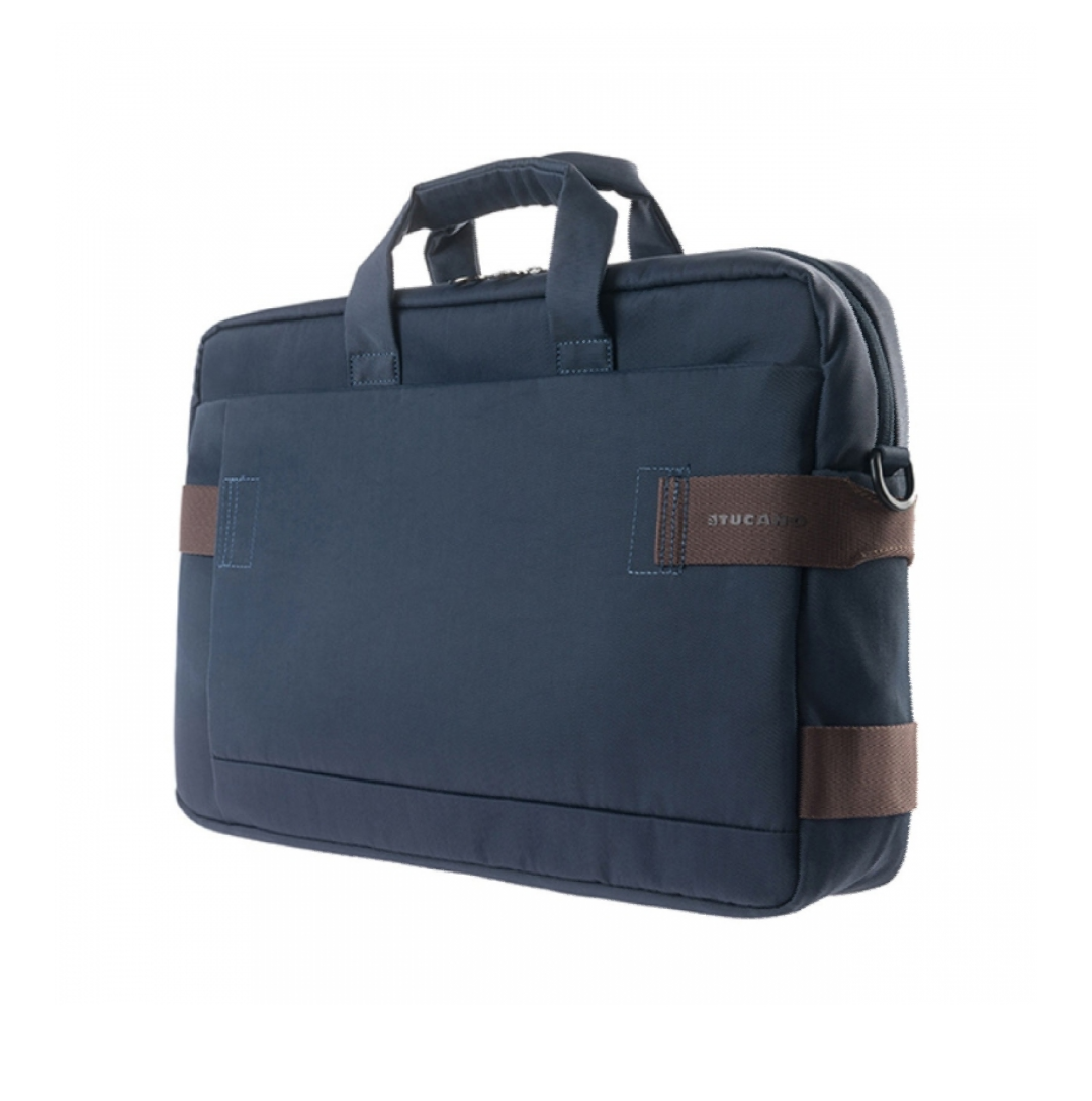 Borsa compatta e capiente, compatibile con notebook e Ultrabook 15.6". Il vano principale è dotato di apposita tasca per consentire protezione al laptop mentre la tasca frontale è fornita di parete organizzata con tasche specifiche per smartphone fino a 5.5", Power Bank e biglietti da visita. La borsa offre infine una comoda tracolla imbottita e rimovibile e, sulla parete posteriore, un'utile fascia per il trasporto tramite trolley.
