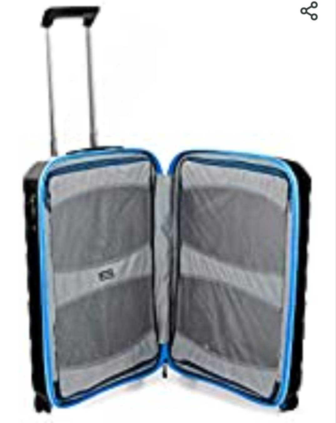 trolley   rigido   leggero   cabina   valigia   resistente   zaino   tasca   porta   pc   polipropilene   zip   tasca   combinazioni   interni   divisorio   portabiti   cinghie   nero   celeste