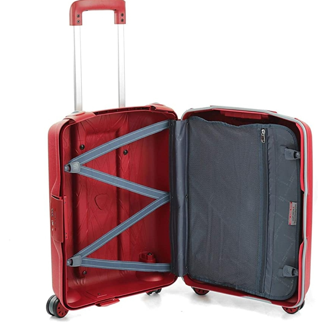 trolley   rigido   leggero   cabina   valigia   resistente   tasca   polipropilene   zip   combinazione   tsa   divisorio   interno   cinghie   rosso