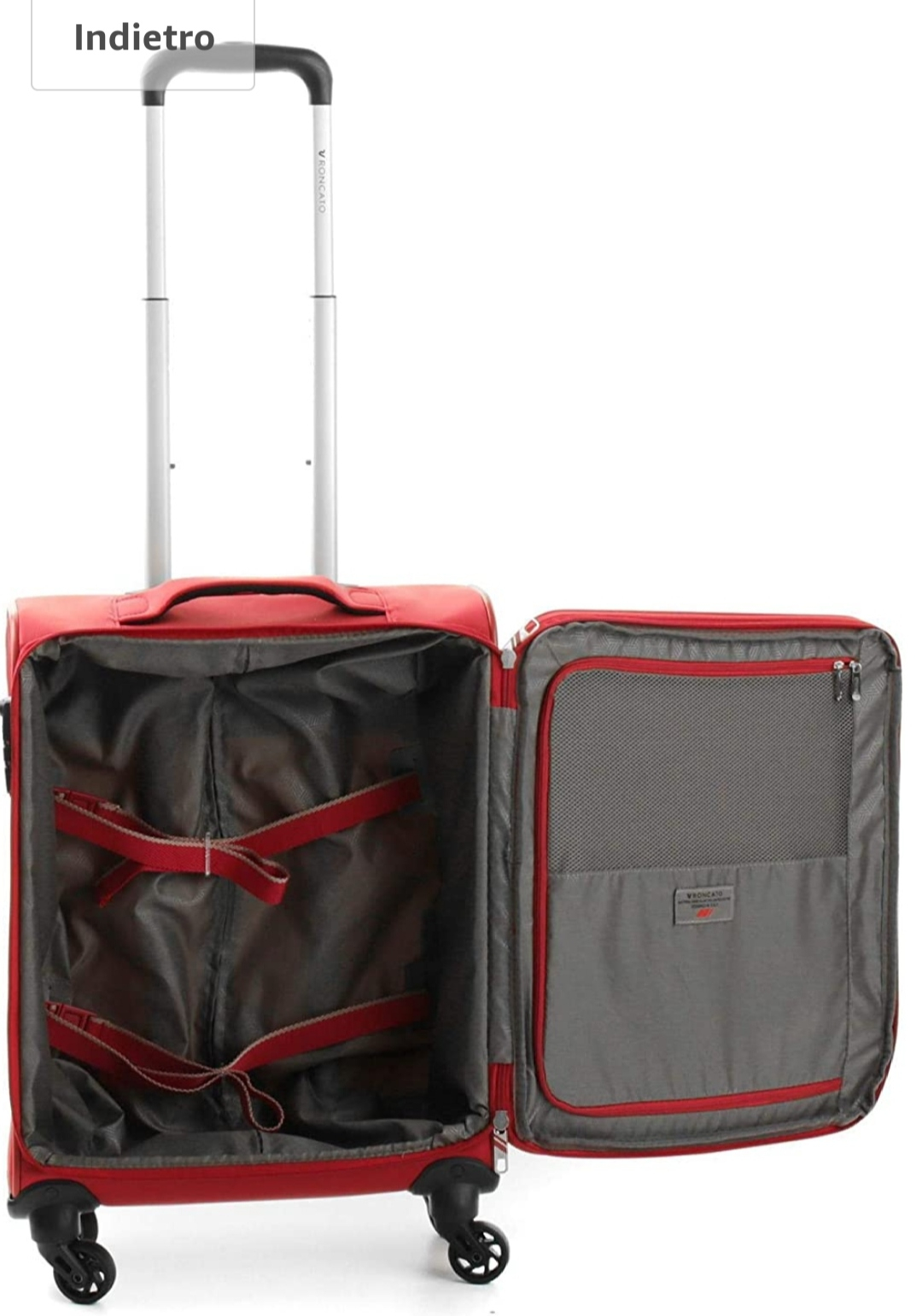 leggera   morbido   cabina   rosso   trolley   valigia   resistente   lavabile   4   ruote   garantito   fashion   cabin   size   bagaglio   mano   tessuto   semirigido   tecnico   poliestere   55   40   20   zip   tsa   combinazioni   divisori   interni   portabiti   cinghie