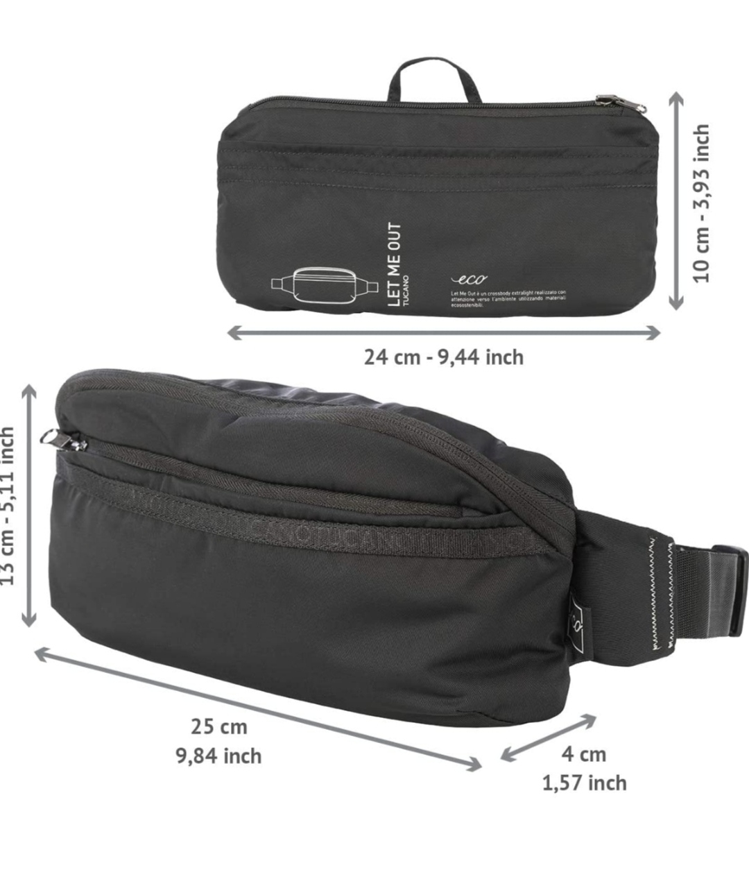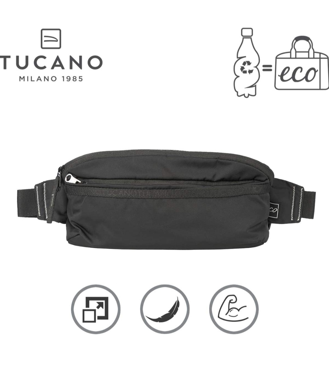Tucano - Let_Me_out Crossbody Marsupio grande Ripiegabile Super Leggero in Tessuto ricavato dal riciclo delle Bottiglie in Pet color Nero
