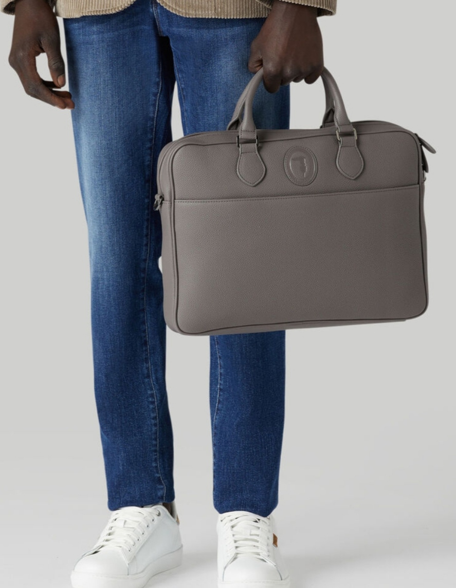 borsa   business   tracolla   grigia   ecopelle   stampa   cervo   pratica   funzionale   doppio   manico   rimovibile   zip