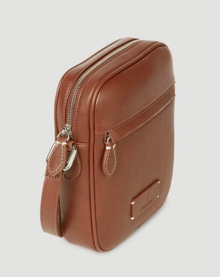 trussardi   tracolla   leisure   ecopelle   comoda   zip   tasca   frontale   logo   tracolla   regolabile   marrone   bella