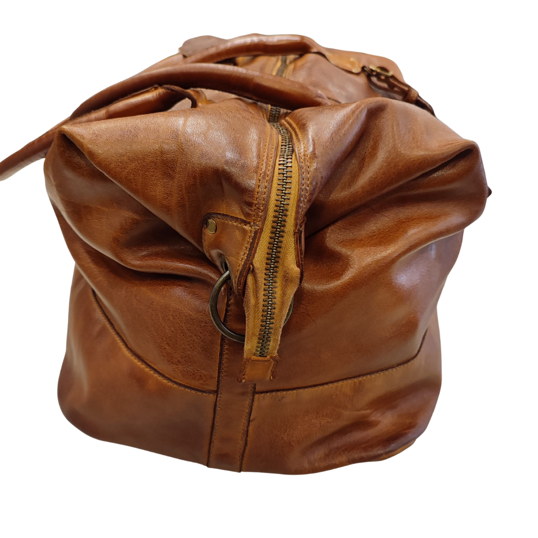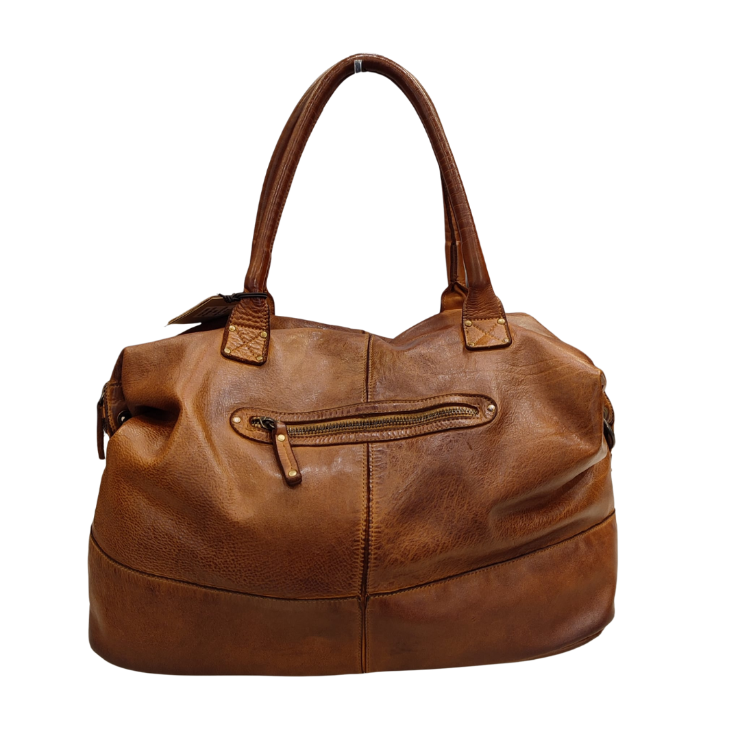 Descrizione Borsa Bayside Bs, è una borsa in cuoio di vitello con tintura in capo ed invecchiamento in bottale: un prodotto dal sapore autentico. Con questa lavorazione, ogni borsa diventa un oggetto unico ed inimitabile. Questo modello di borsa, per forme e dimensioni, è particolarmente adatto al Viaggio. Manico e spallacci regolabili in pelle, tasche interne foderate aperte e con zip, fodera in cotone rinforzato. Tasca posteriore antitaccheggio con chiusura lampo. Stile vintage tipico degli borsa Bayside. Dimensione Larghezza 50, altezza 25 e profondità 30 cm Dettagli La colorazione del prodotto è ottenuta attraverso un particolare procedimento di tintura dell'articolo. Questo processo rende la borsa con sfumature originali e differenti per ogni capo. Questa lavorazione potrebbe presentare delle "imperfezioni" dovute alla spazzolatura che non sono da considerarsi difetti, bensì risultati tipici di questo metodo che rendono ogni articolo unico ed esclusivo.