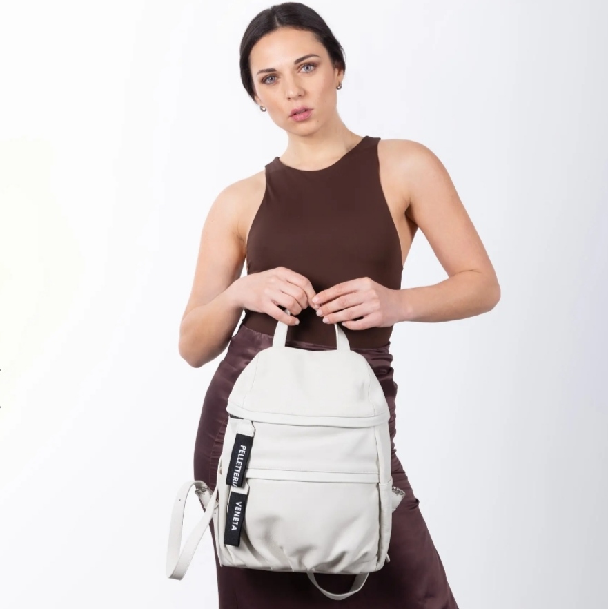 zaino   pelle   vera   liscia   pelletteria   veneta   ghiaccio   ice   panna   donna   italiana   tracolla   regolabile   morbida   leggera   spaziosa   comoda   tasca   interna