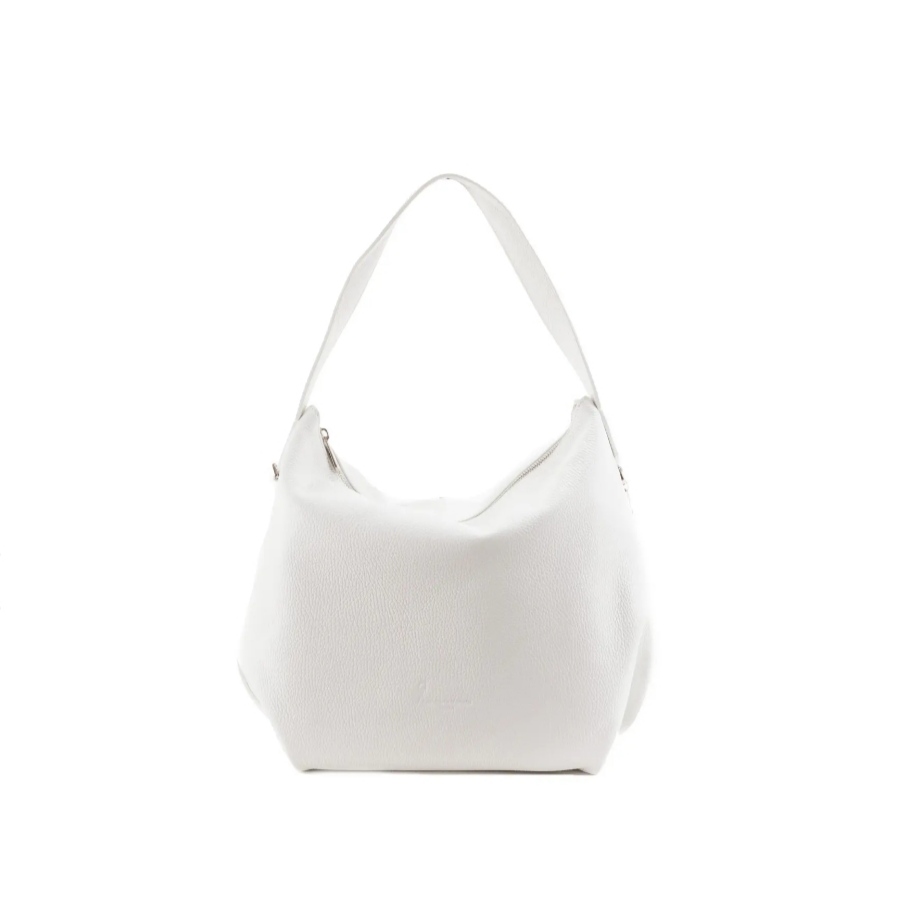 borsa   sacca   pelle   donna   pelletteria   veneta   tracolla   lunga   regolabile   pelle   bianca   martellata   made   italy   allungabile   spalla   leggera   spaziosa   tasche   interne
