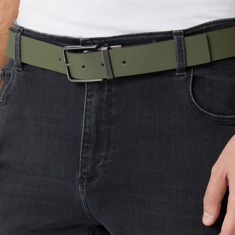 Cintura da Uomo Trussardi Verde double face H 3,5 cm