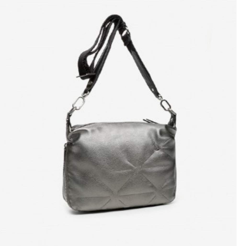 tracolla   donna   argento   ecopelle   zip   superiore   comoda   tracolla   regolabile   scomparti   interni   fianchi   soffietti   laterali   regolabili