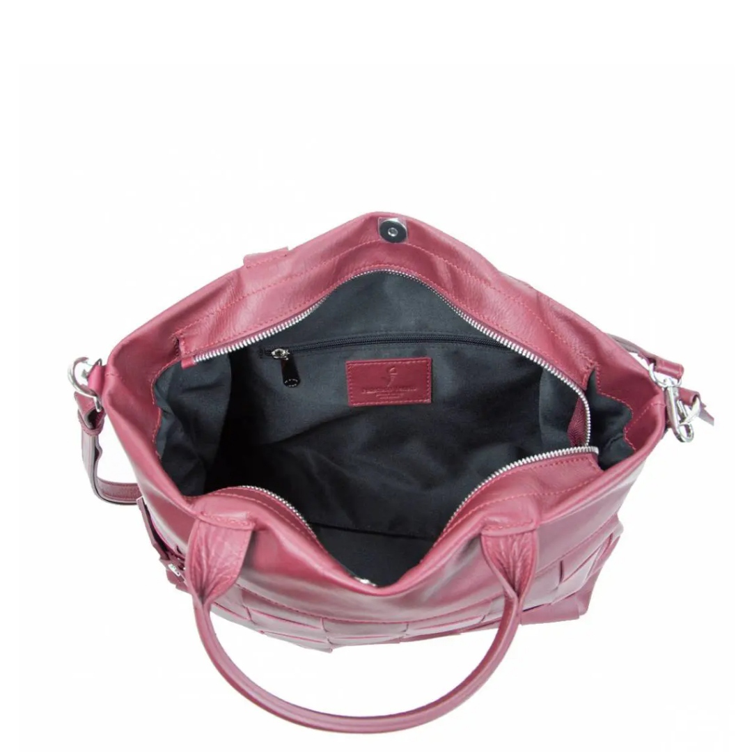 manico   corto   borsa   pelle   made   italy   pelletteria   veneta   donna   tracolla   regolabile   doppi   zip   bottone   magnetico   fodera   tasche   interne