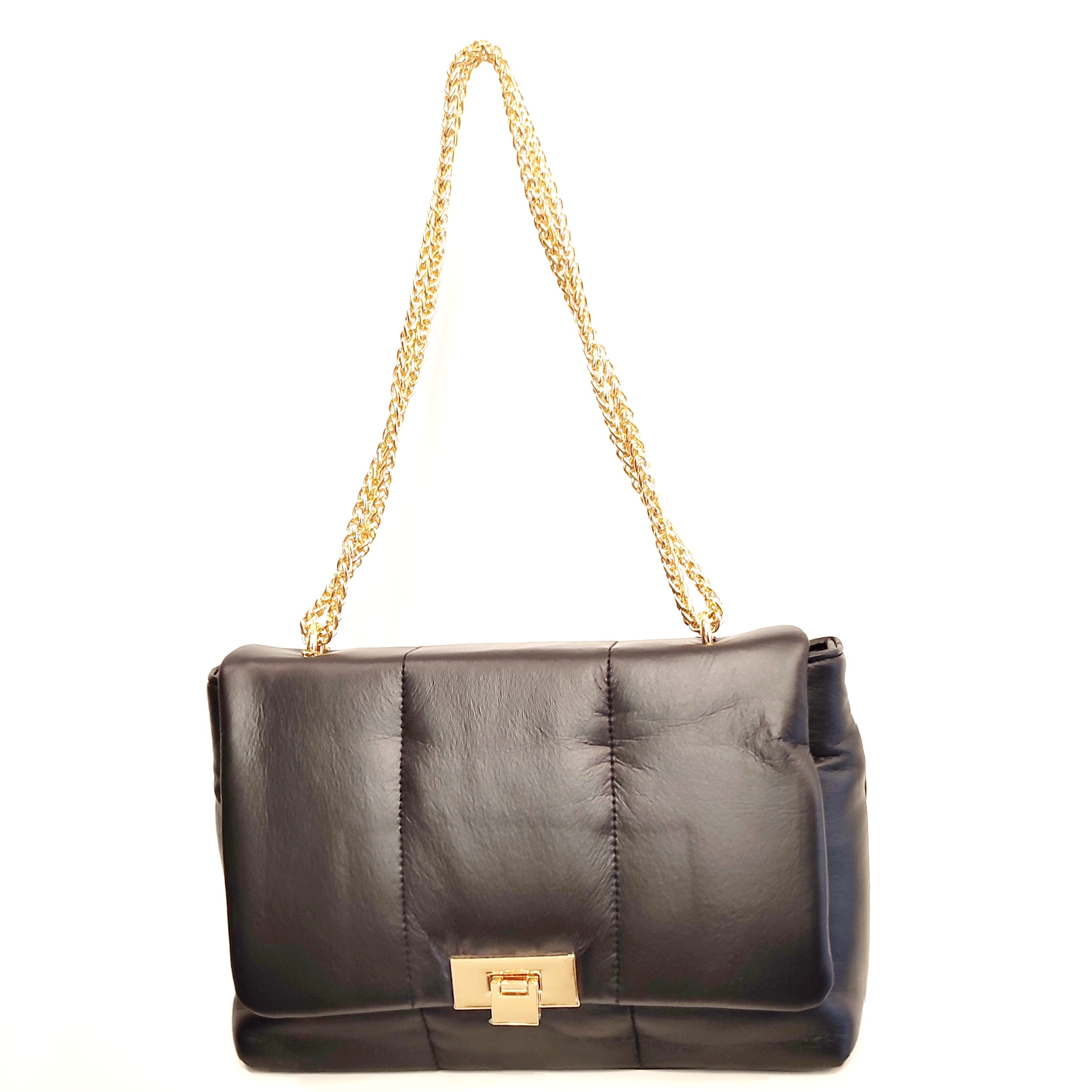 borsa   tracolla   catena   ecoppel   nera   zip   patta   morbida   chiusura   oro