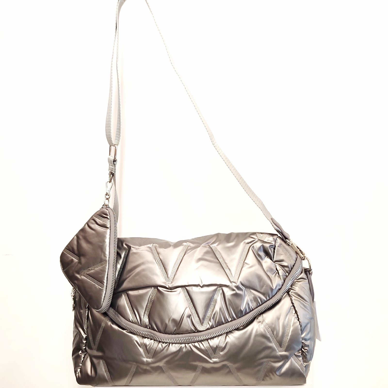 borsa   donna   piumino   acciao   tracolla   argento   regolabile   zip   accessori   regolabile   tasche   interne   removibile