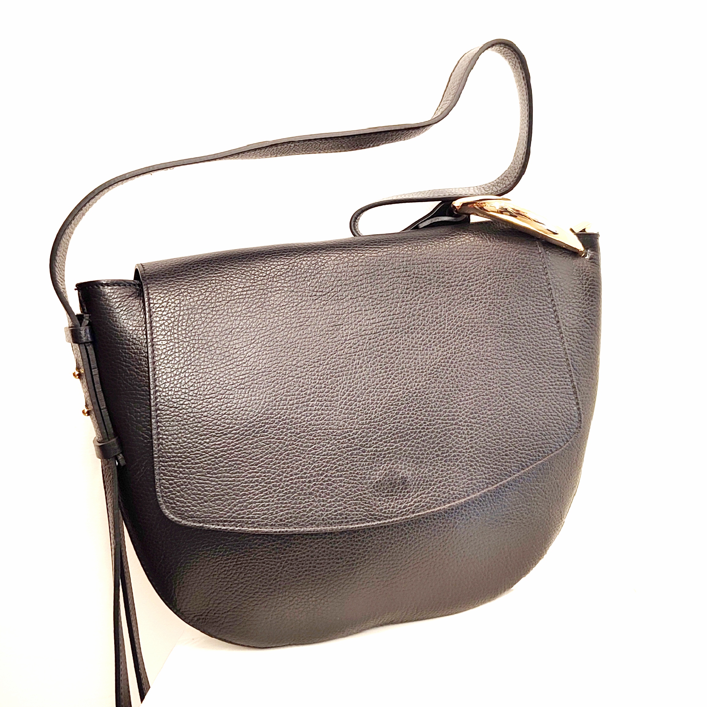 pelle   borsa   tracolla   oro   anello   accessorio   patta   nero   zip   tasche