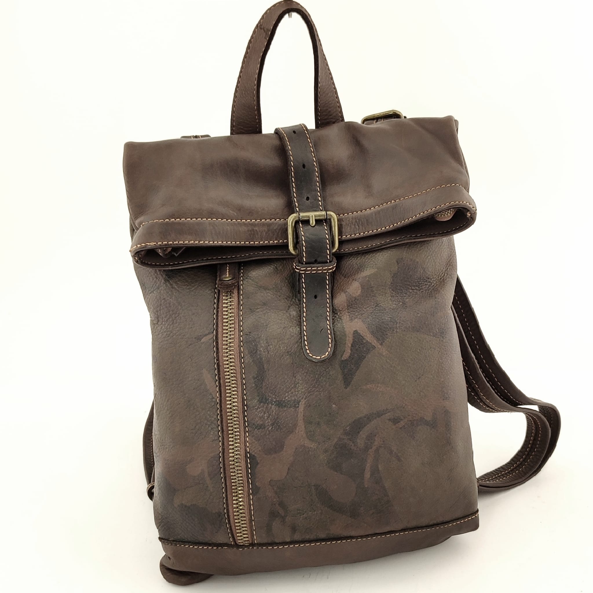 zaino   bayside   pelle   lavata   marrone   camouflage   morbido   fashion   originale   made   italy   comodo   pratico   porta   pc   lampo   vintage   comodo   pratico   unico