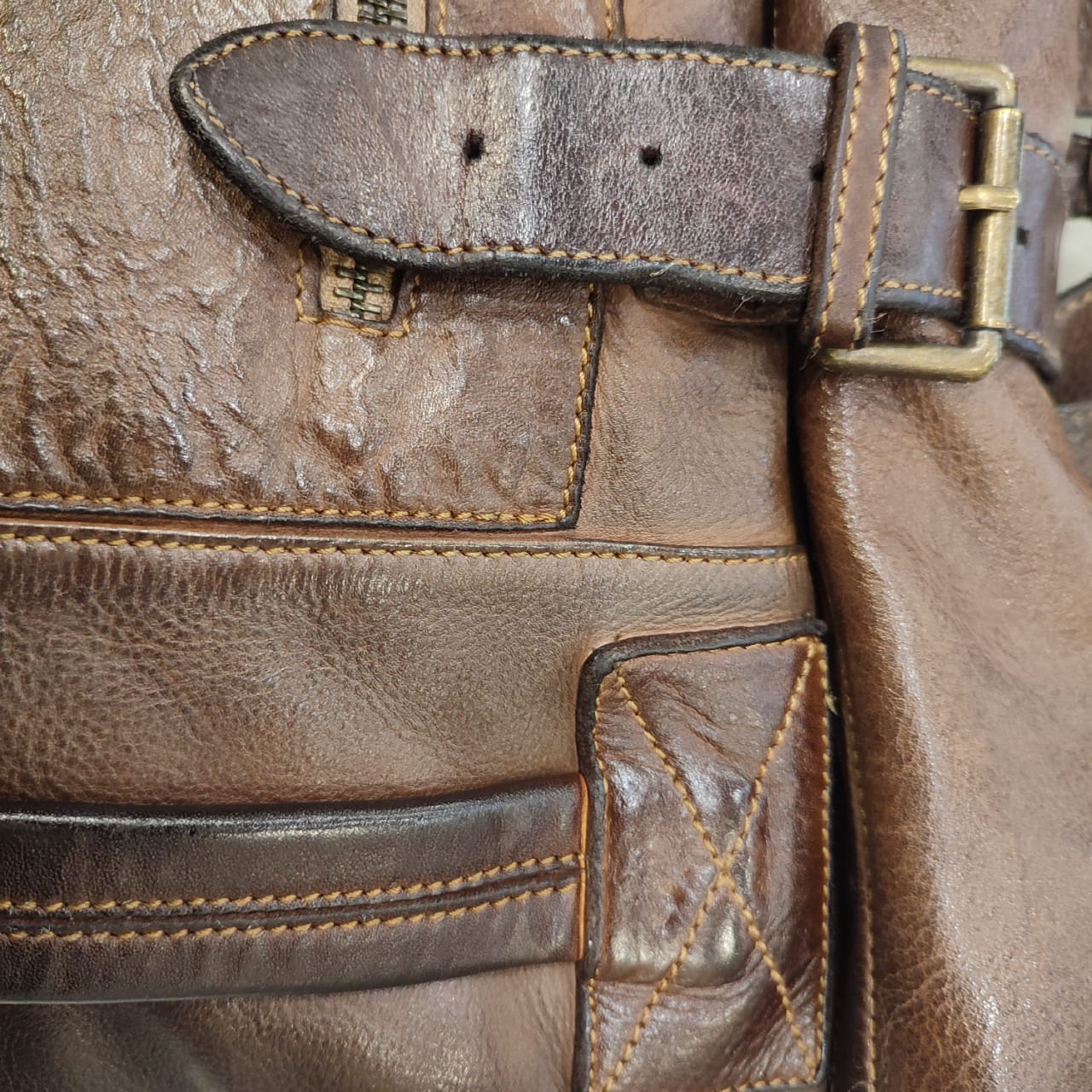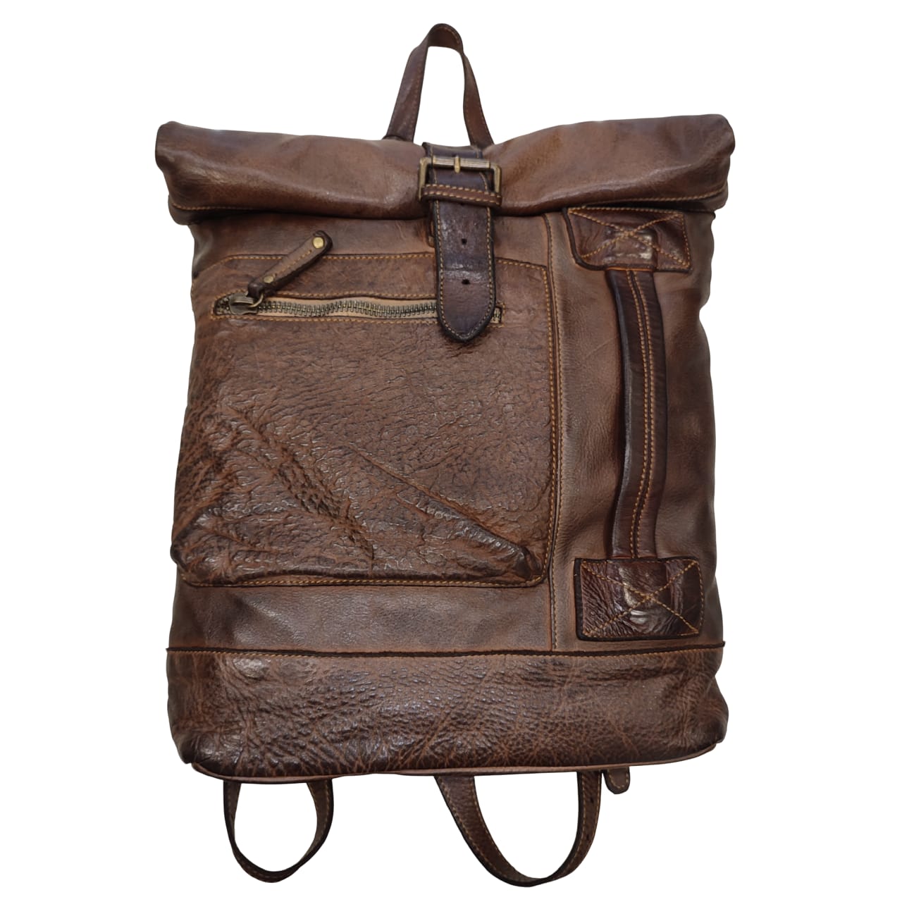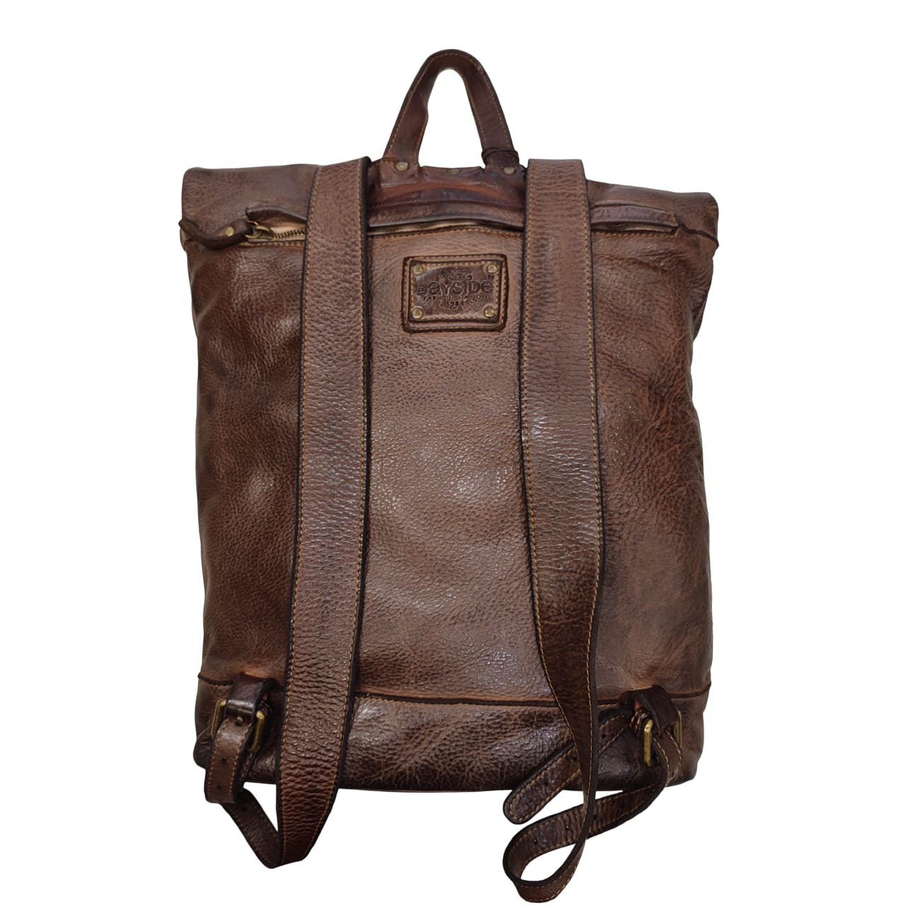 zaino   bayside   borsa   pelle   lavata   marrone   testa   moro   scuro   made   itali   artigianale