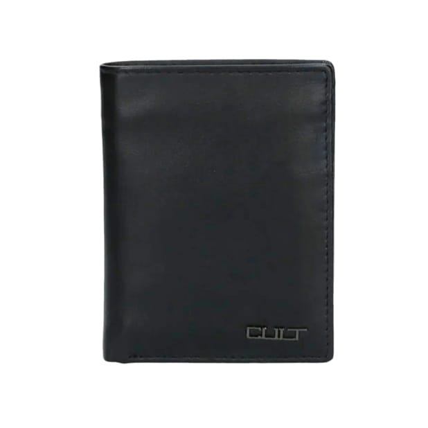 Portafoglio firmato Cult con logo nella parte frontale. Al suo interno sono presenti più scomparti per organizzare banconote, tessere e monete, chiusura a libro. Dimensioni 12x9x2
