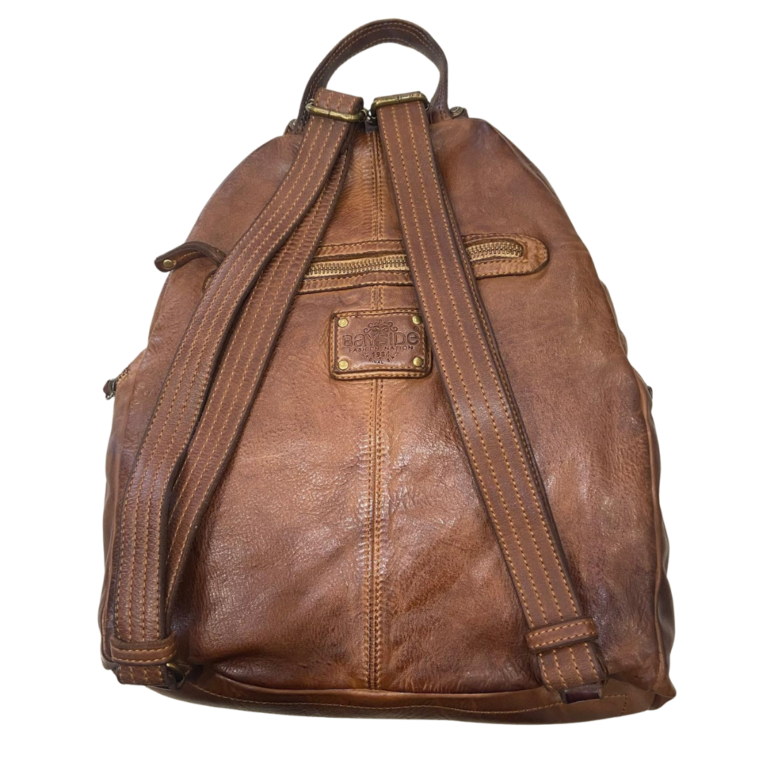 Zaino Bayside in pelle vintage e borchie color cuoio bs 399b