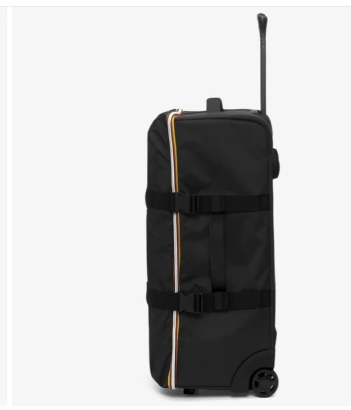 Il trolley da viaggio Blossac M è realizzato in nylon con tessuto di rinforzo alla base. L'accessorio presenta quattro ruote che seguono ogni movimento, tasche funzionali per organizzare il contenuto, manico superiore e laterale per la massima versatilità. Chiusura con zip a doppio cursore. Tessuto ripstop impermeabile, idrorepellente, antivento Tessuto di rinforzo applicato alla base per una maggiore resistenza Manico in nastro mm 2 2 ruote doppie Tasca frontale con zip Manico rigido estraibile da tasca posteriore Maniglia laterale Maniglia superiore Apertura principale con K-Way zip Regolazione doppia laterale di contenimento Bustina di riconoscimento agganciabile Scompartimenti multifunzionali interni Logo bianco in silicone Misure: cm 67 x cm 35 x cm 30