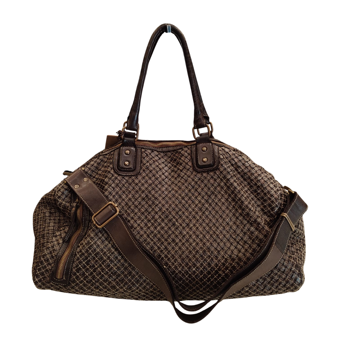 Descrizione Borsone Bayside Bs, è una borsa in cuoio di vitello con tintura in capo ed invecchiamento in bottale: un prodotto dal sapore autentico. Con questa lavorazione, ogni borsa diventa un oggetto unico ed inimitabile. Questo modello di borsa, per forme e dimensioni, è particolarmente adatto al Viaggio. Manico e spallacci regolabili in pelle, tasche interne foderate aperte e con zip, fodera in cotone rinforzato. Tasca posteriore antitaccheggio con chiusura lampo. Stile vintage tipico degli borsa Bayside. Dimensione Larghezza 55, altezza 25 e profondità 32 cm Dettagli La colorazione del prodotto è ottenuta attraverso un particolare procedimento di tintura dell'articolo. Questo processo rende la borsa con sfumature originali e differenti per ogni capo. Questa lavorazione potrebbe presentare delle "imperfezioni" dovute alla spazzolatura che non sono da considerarsi difetti, bensì risultati tipici di questo metodo che rendono ogni articolo unico ed esclusivo.