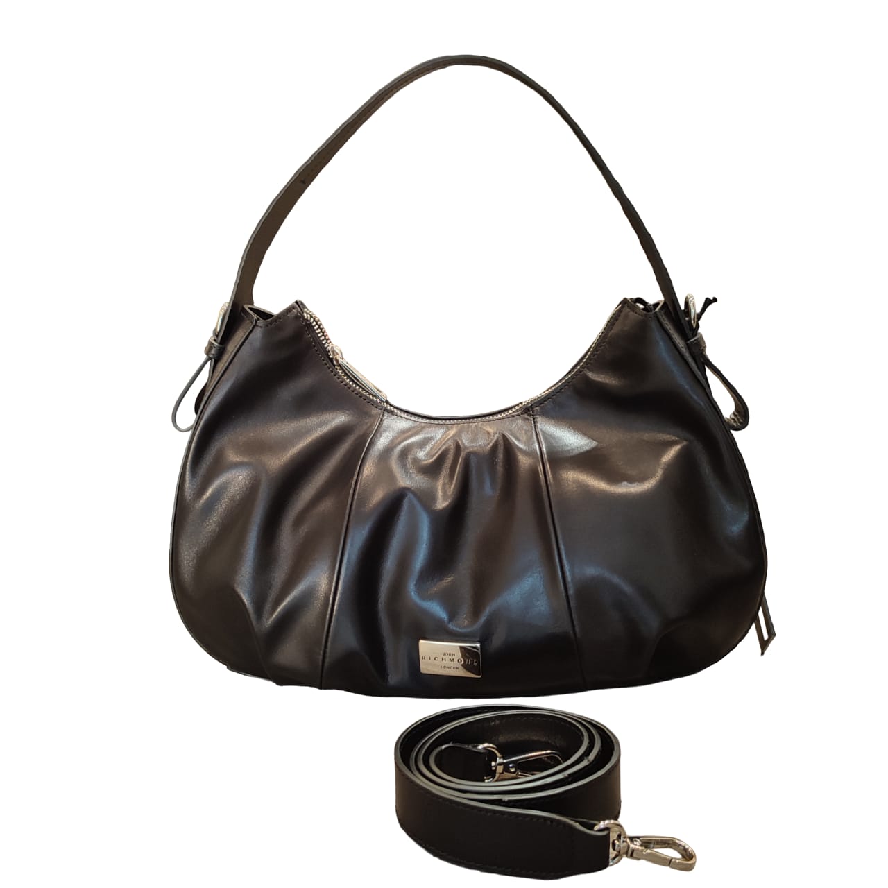 Borsa sacca a spalla in pelle nera di John Richmond jr w 1148