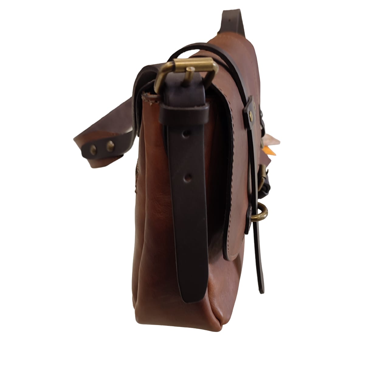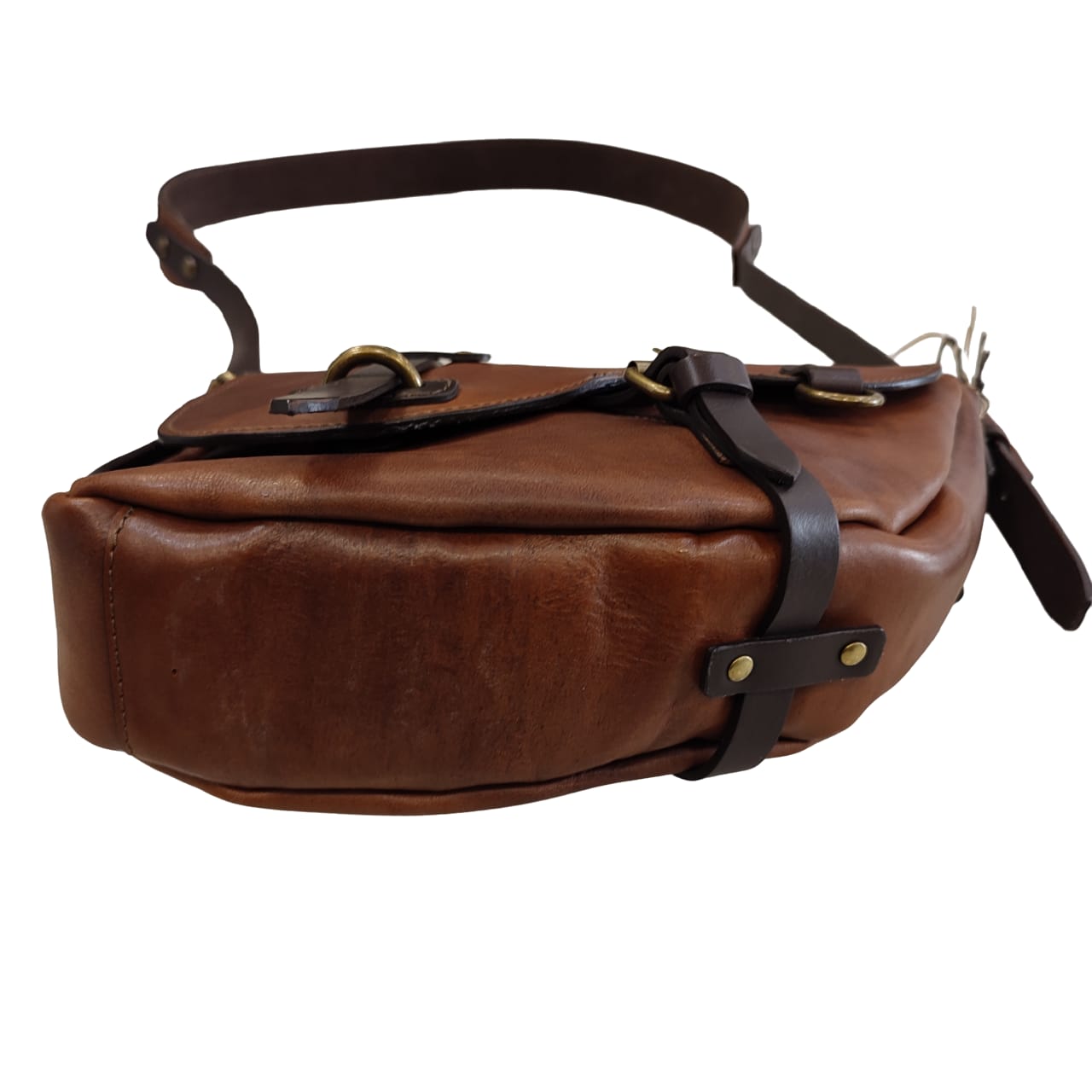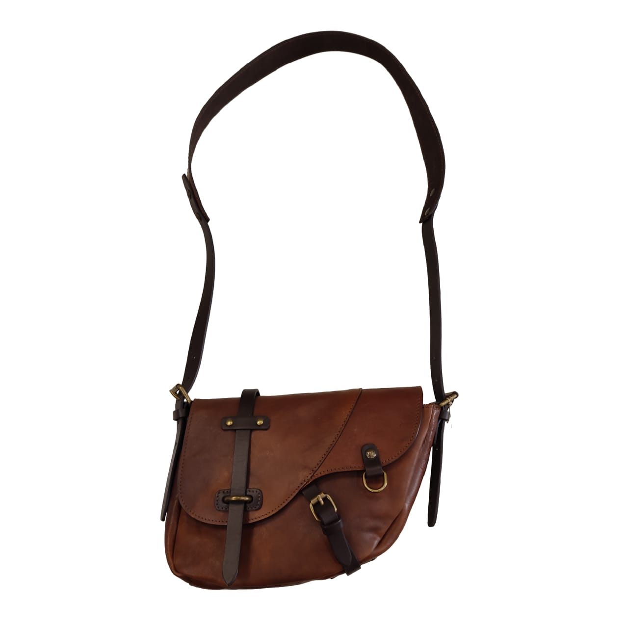 Borsa Tracolla Chiarugi marrone in cuoio, made Italy, interamente artigianale con cinghie testa di moro.