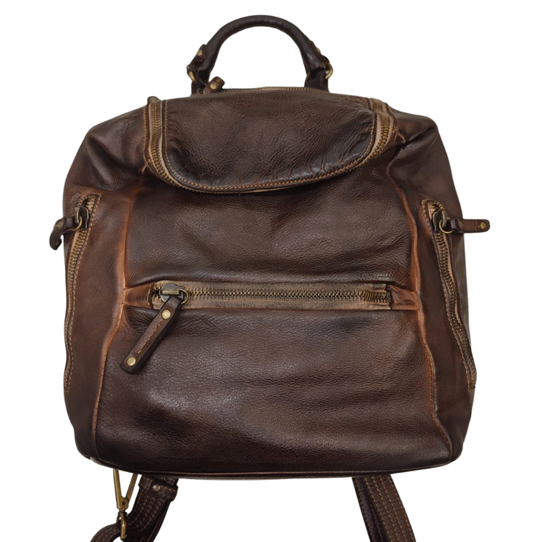 zaino   bayside   pelle   tinta   zip   comodo   fashion   originale   made   italy   comodo   pratico   inimitabile   unico   autentico   marrone   scuro   testa   moro