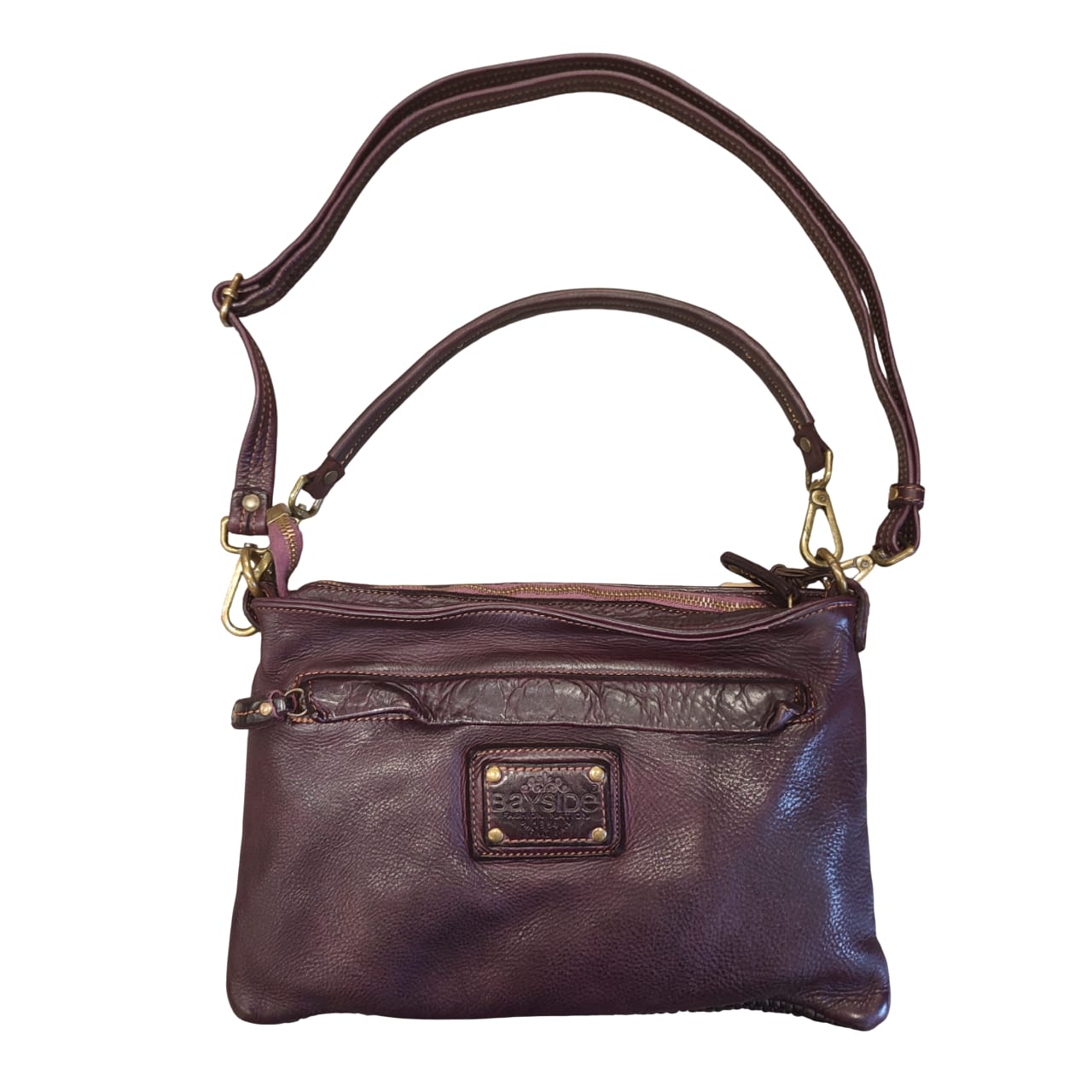 Descrizione Borsa Bayside Bs 329 , è una borsa in cuoio di vitello con tintura in capo ed invecchiamento in bottale: un prodotto dal sapore autentico. Con questa lavorazione, ogni borsa diventa un oggetto unico ed inimitabile. Questo modello di borsa, per forme e dimensioni risulta media. Manico e tracolla regolabili in pelle, tasche esterneD e interne foderate aperte e con zip, fodera in cotone rinforzato. Stile vintage tipico degli borsa Bayside. La colorazione del prodotto è ottenuta attraverso un particolare procedimento di tintura dell'articolo. Questo processo rende la borsa con sfumature originali e differenti per ogni capo. Questa lavorazione potrebbe presentare delle "imperfezioni" dovute alla spazzolatura che non sono da considerarsi difetti, bensì risultati tipici di questo metodo che rendono ogni articolo unico ed esclusivo. Dimensioni altezza 21 cm larghezza 32 cm profondita 7 cm.