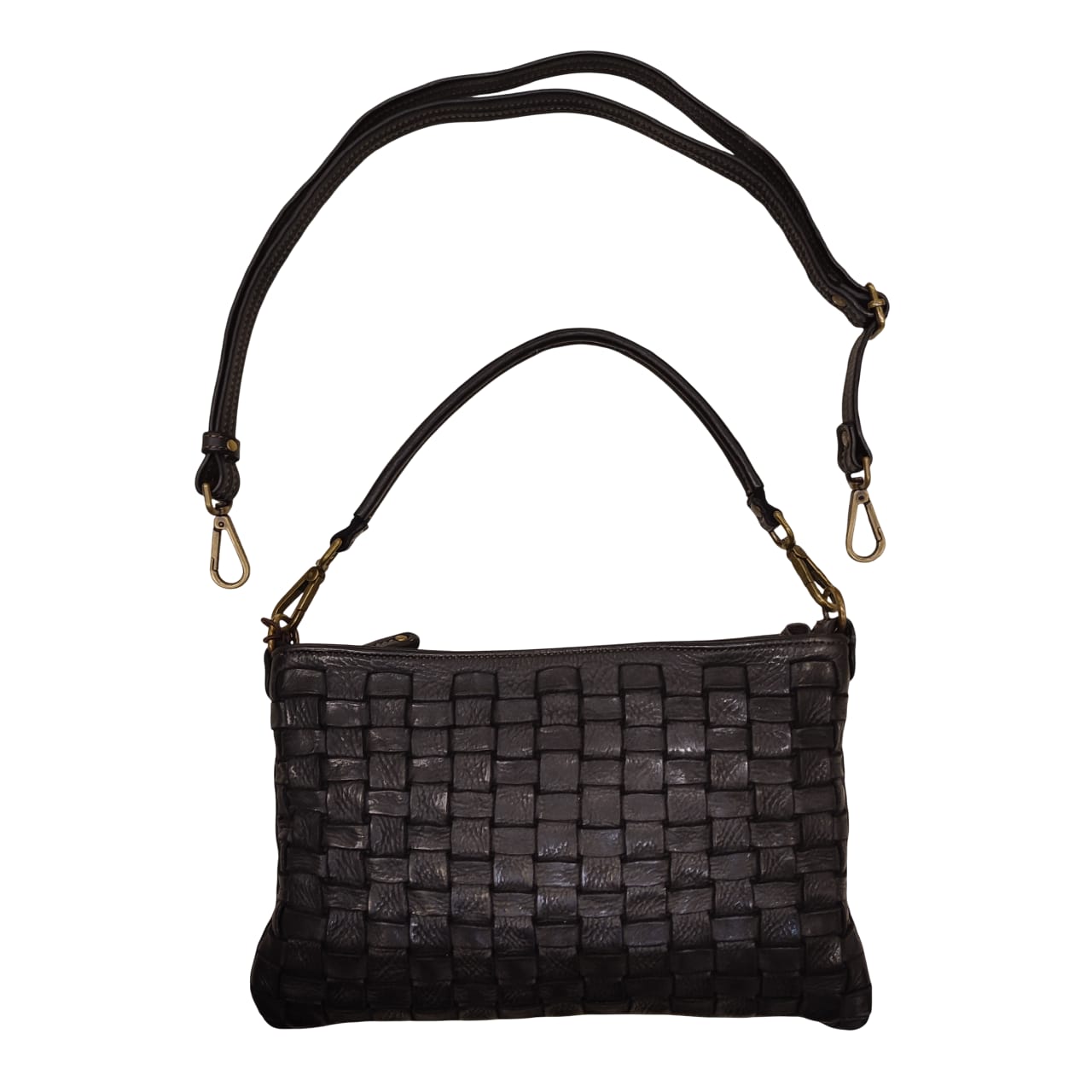 Borsa tracolla Bayside intreccio grande nero art bs 238 pellame rock