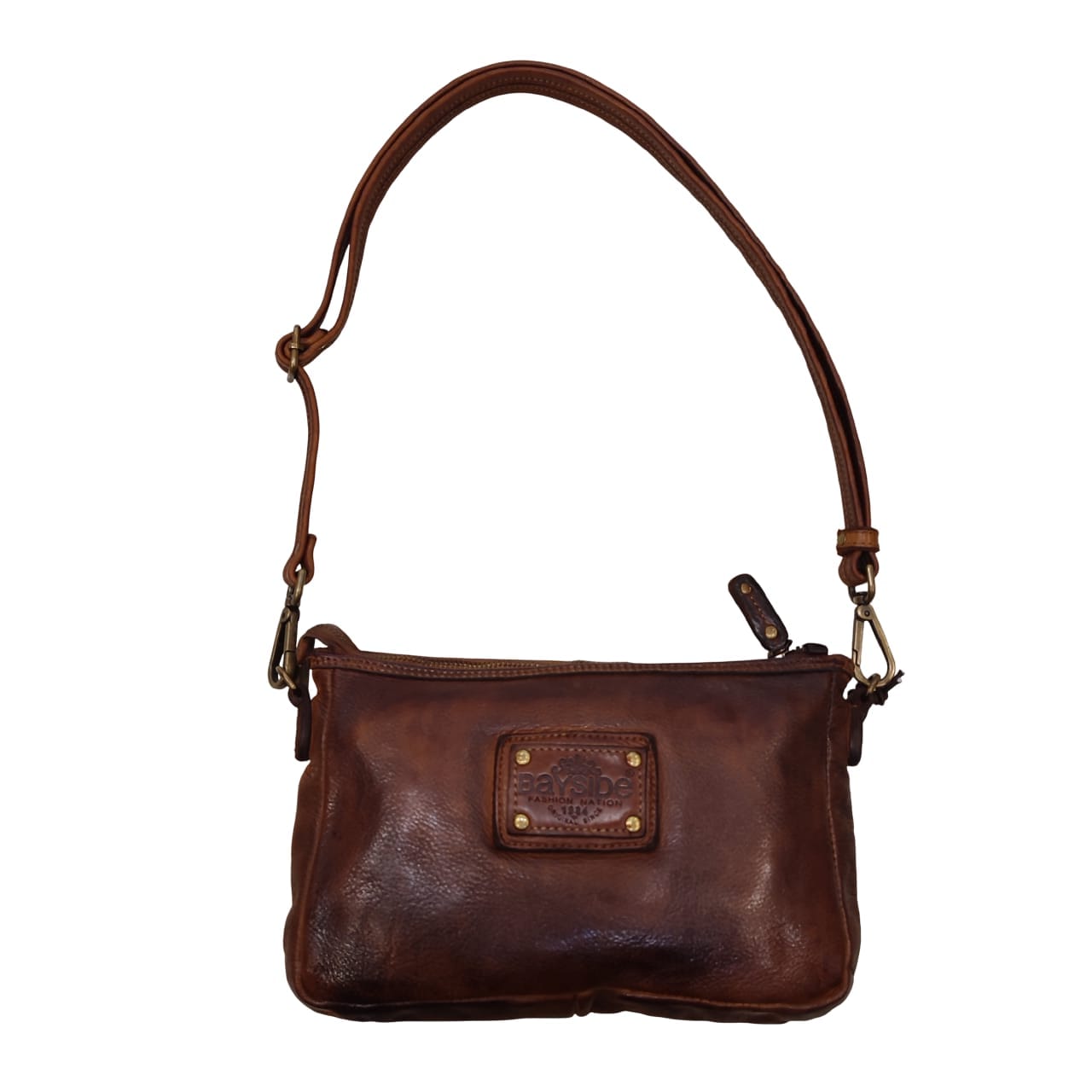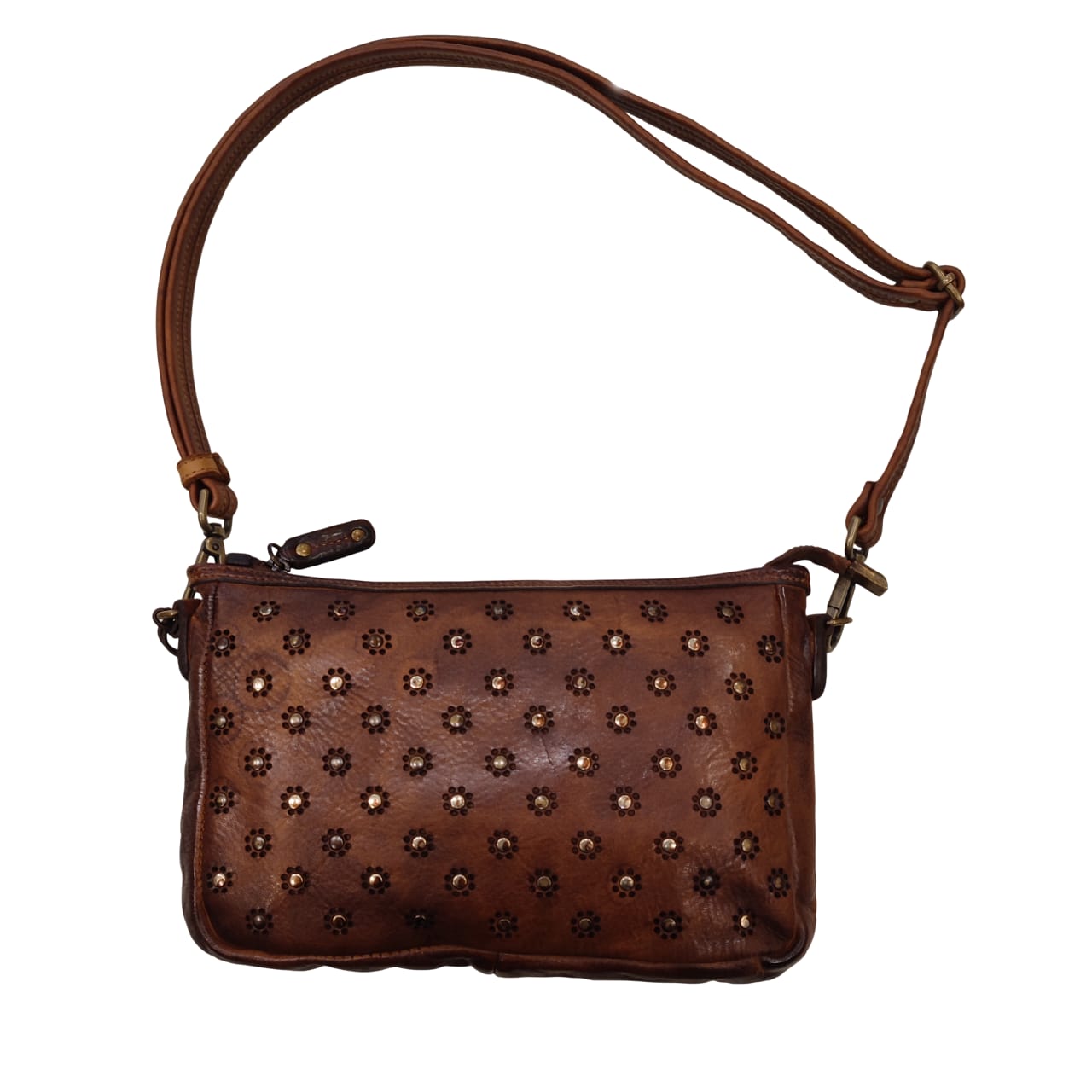Clutch/ Borsa tracolla Bayside cuoio con bulloncini a fiore art bs 691 pellame rock