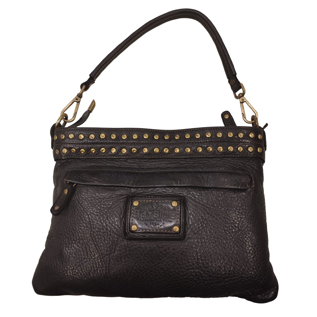 Borsa tracolla Bayside laserata/bulloni nera art bs 779 pellame rock