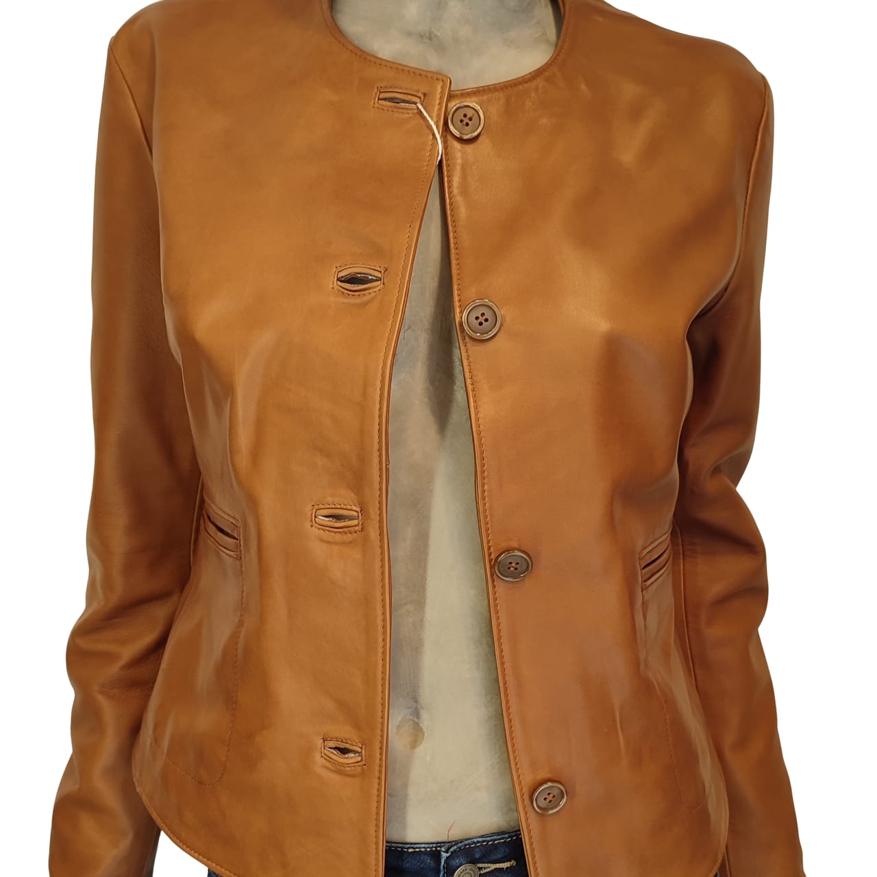 Giacca donna in pelle con bottoni color cuoio disponibile tg 42