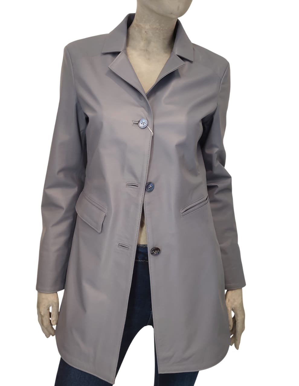 Cappottino leggero da donna in pelle aderente con bottoni color carta da zucchero tg M