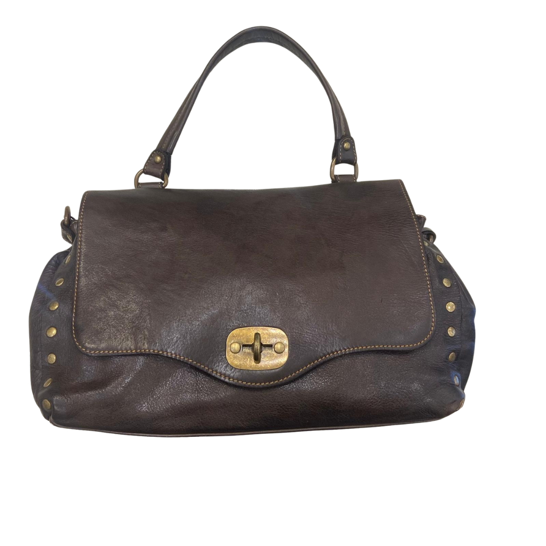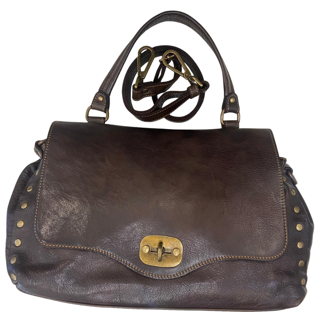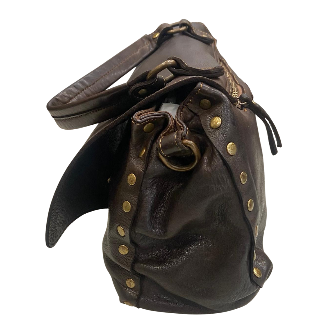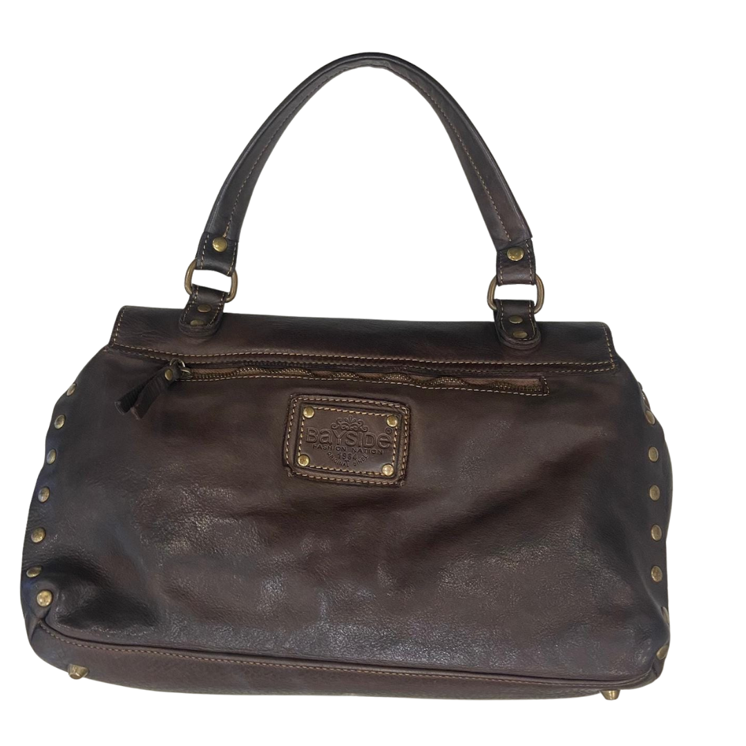 bayside   pelle   vintage   artigianale   borchie   patta   manico   corto   tracolla   regolabile   italiana   italy