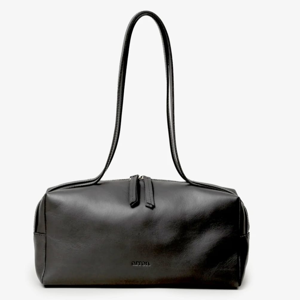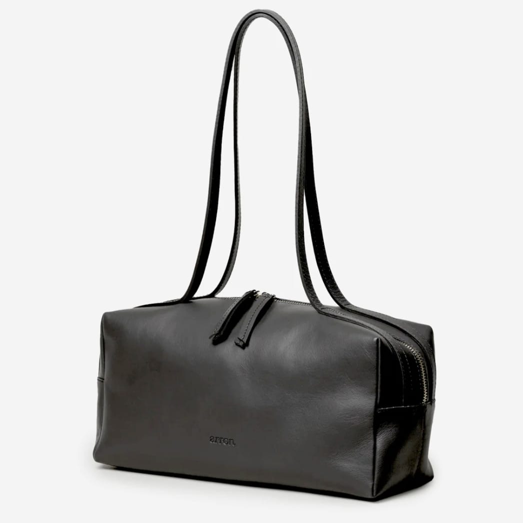 arron   borsa   pelle   nera   doppio   manico   pregiata   bella   fahion   liscia