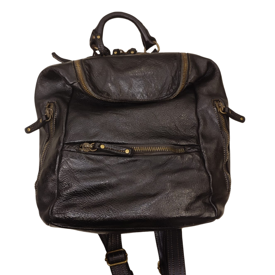 Descrizione Zaino Bayside BS484, è uno zaino in cuoio di vitello con tintura in capo ed invecchiamento in bottale: un prodotto dal sapore autentico. Con questa lavorazione, ogni zaino diventa un oggetto unico ed inimitabile. Questo modello di zaino, per forme e dimensioni, è particolarmente adatto ai bikers. Manico e spallacci regolabili in pelle, tasche interne foderate aperte e con zip, fodera in cotone rinforzato. Tasca posteriore antitaccheggio con chiusura lampo. Stile vintage tipico degli zaini Bayside. Dimensione Larghezza 34, altezza 34 e profondità 15 cm Dettagli La colorazione del prodotto è ottenuta attraverso un particolare procedimento di tintura dell'articolo. Questo processo rende la borsa con sfumature originali e differenti per ogni capo. Questa lavorazione potrebbe presentare delle "imperfezioni" dovute alla spazzolatura che non sono da considerarsi difetti, bensì risultati tipici di questo metodo che rendono ogni articolo unico ed esclusivo.