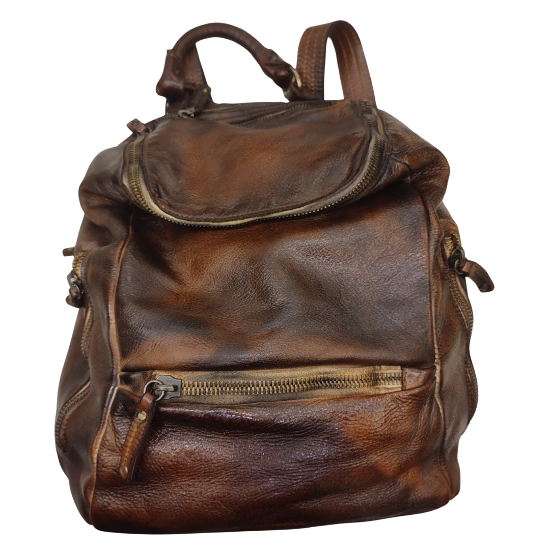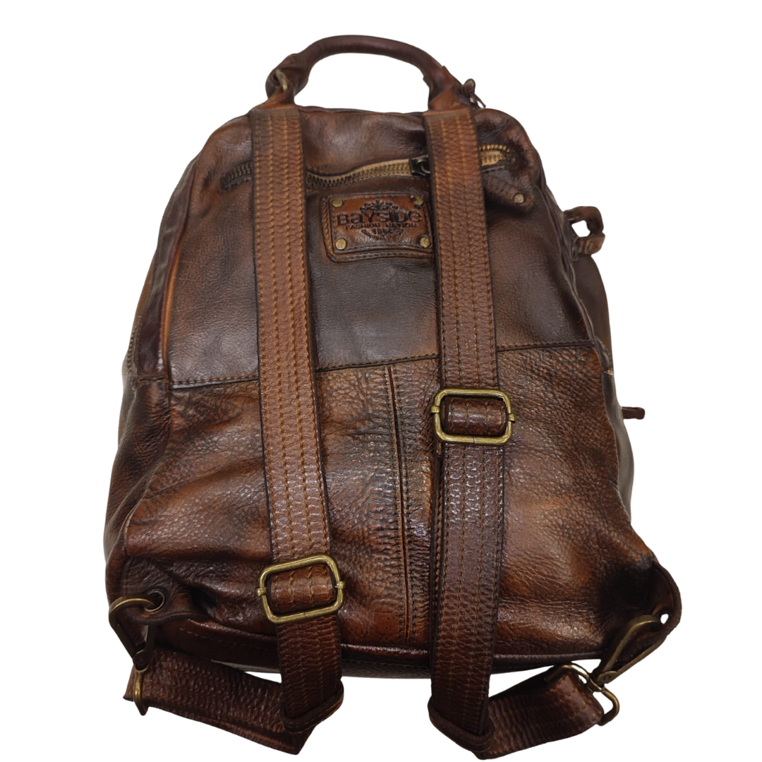 Descrizione Zaino Bayside BS484, è uno zaino in cuoio di vitello con tintura in capo ed invecchiamento in bottale: un prodotto dal sapore autentico. Con questa lavorazione, ogni zaino diventa un oggetto unico ed inimitabile. Questo modello di zaino, per forme e dimensioni, è particolarmente adatto ai bikers. Manico e spallacci regolabili in pelle, tasche interne foderate aperte e con zip, fodera in cotone rinforzato. Tasca posteriore antitaccheggio con chiusura lampo. Stile vintage tipico degli zaini Bayside. Dimensione Larghezza 34, altezza 34 e profondità 15 cm Dettagli La colorazione del prodotto è ottenuta attraverso un particolare procedimento di tintura dell'articolo. Questo processo rende la borsa con sfumature originali e differenti per ogni capo. Questa lavorazione potrebbe presentare delle "imperfezioni" dovute alla spazzolatura che non sono da considerarsi difetti, bensì risultati tipici di questo metodo che rendono ogni articolo unico ed esclusivo.