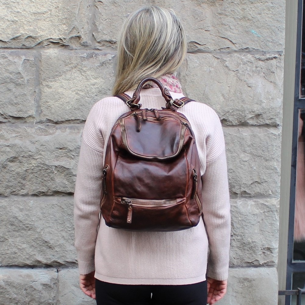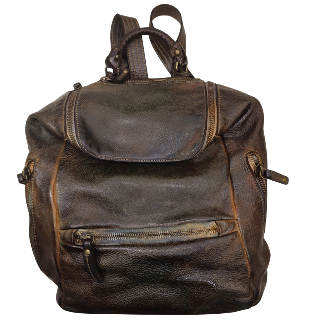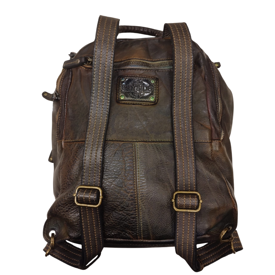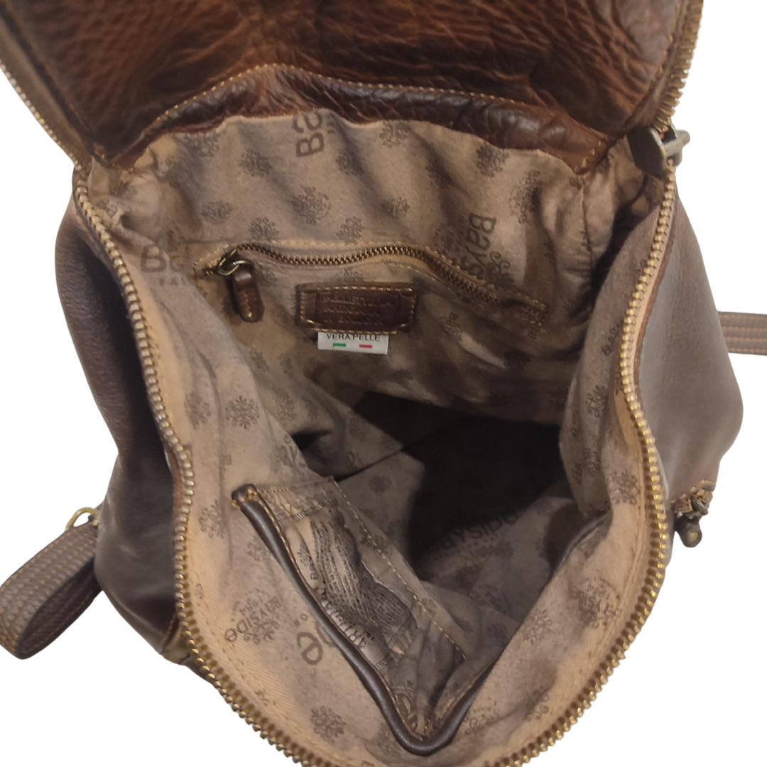 Descrizione Zaino Bayside BS484, è uno zaino in cuoio di vitello con tintura in capo ed invecchiamento in bottale: un prodotto dal sapore autentico. Con questa lavorazione, ogni zaino diventa un oggetto unico ed inimitabile. Questo modello di zaino, per forme e dimensioni, è particolarmente adatto ai bikers. Manico e spallacci regolabili in pelle, tasche interne foderate aperte e con zip, fodera in cotone rinforzato. Tasca posteriore antitaccheggio con chiusura lampo. Stile vintage tipico degli zaini Bayside. Dimensione Larghezza 34, altezza 34 e profondità 15 cm Dettagli La colorazione del prodotto è ottenuta attraverso un particolare procedimento di tintura dell'articolo. Questo processo rende la borsa con sfumature originali e differenti per ogni capo. Questa lavorazione potrebbe presentare delle "imperfezioni" dovute alla spazzolatura che non sono da considerarsi difetti, bensì risultati tipici di questo metodo che rendono ogni articolo unico ed esclusivo.