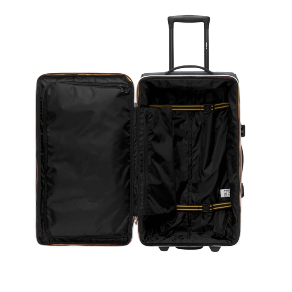 Il trolley da viaggio Blossac M è realizzato in nylon con tessuto di rinforzo alla base. L'accessorio presenta quattro ruote che seguono ogni movimento, tasche funzionali per organizzare il contenuto, manico superiore e laterale per la massima versatilità. Chiusura con zip a doppio cursore. Tessuto ripstop impermeabile, idrorepellente, antivento Tessuto di rinforzo applicato alla base per una maggiore resistenza Manico in nastro mm 2 2 ruote doppie Tasca frontale con zip Manico rigido estraibile da tasca posteriore Maniglia laterale Maniglia superiore Apertura principale con K-Way zip Regolazione doppia laterale di contenimento Bustina di riconoscimento agganciabile Scompartimenti multifunzionali interni Logo bianco in silicone Misure: cm 67 x cm 35 x cm 30