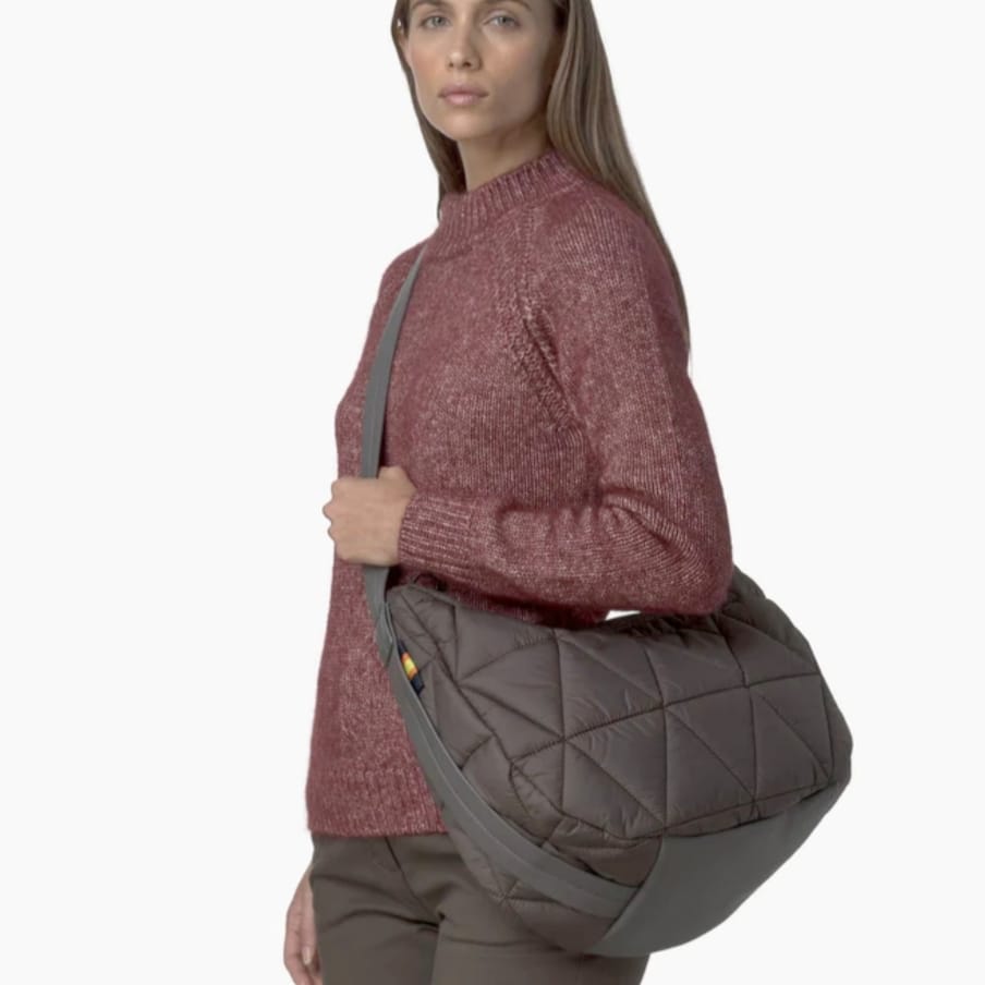 Borsa K-way a tracolla trapuntata da donna color oliva nero Didiane