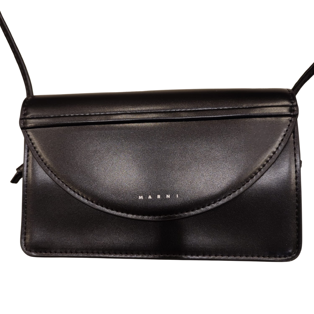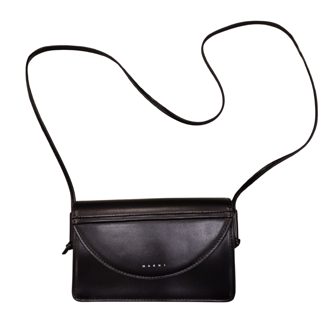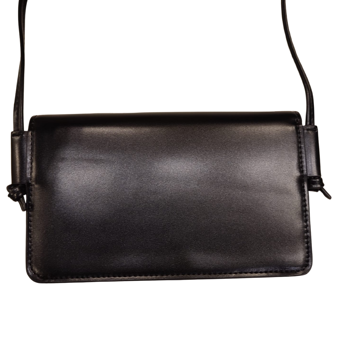 Borsa nera piccola con tracolla. Presenta un manico lungo e patta. Interno foderato per contenere gli oggetti in modo ordinato.