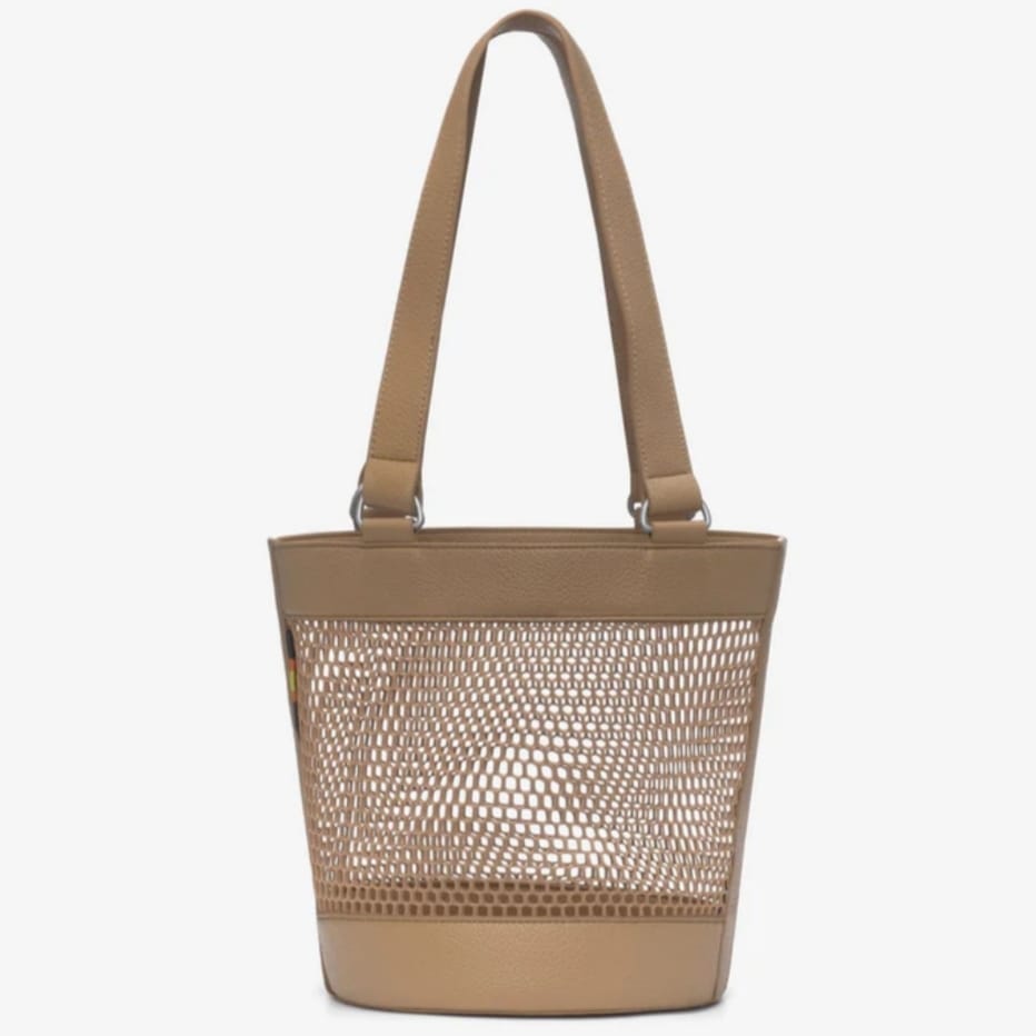 Hollis Small è una borsa a secchiello realizzata in materiale sintetico effetto pelle, con pannello in rete laterale e sacca interna in nylon con coulisse di chiusura ed estraibile. La borsa è dotata di manici per essere portata in modo confortevole a spalla.